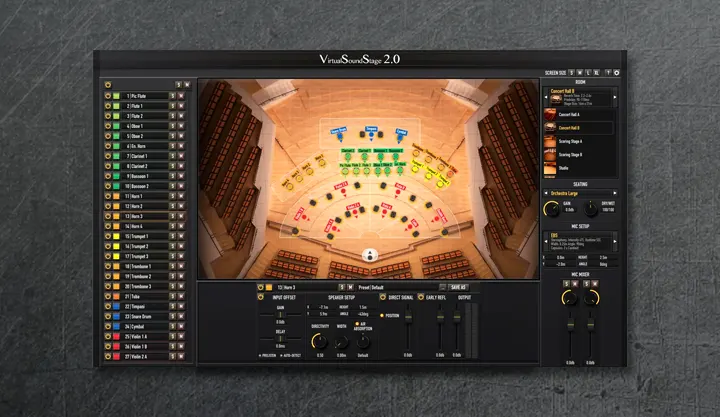 - Instrument Positioning: Allows you to move sound sources (instruments) within the virtual space to control their panning, volume, and perceived distance.