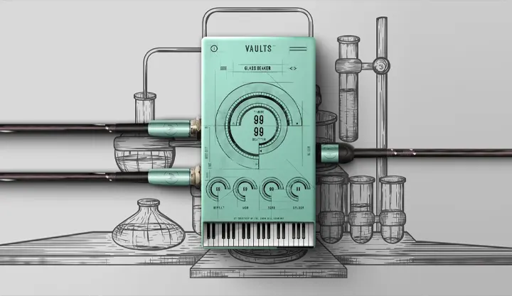 Glass Beaker works within the free “Vaults” plugin by The Crow Hill Company, available for macOS and Windows in VST, VST3, AU, and AAX formats.